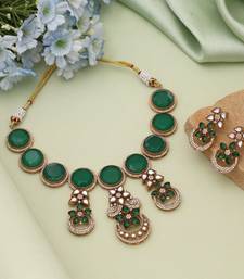 | Product Description | Adjustable Rope | Necklace Length: 22.00 Cm X Width: 7.80 Cm | Earring Length: 4.20 Cm X Width: 2.20 Cm | Metal: Brass With Good Quality Gold Plated | Color: Green | Stone: American Diamond & Monalisa Stone | Gross Weight: 123.00 Grams | Package Content: 1 Piece Of Necklace/ 1 Pair Of Earring | Back Finding: Post With Friction Back X Earring Style: Dangle |