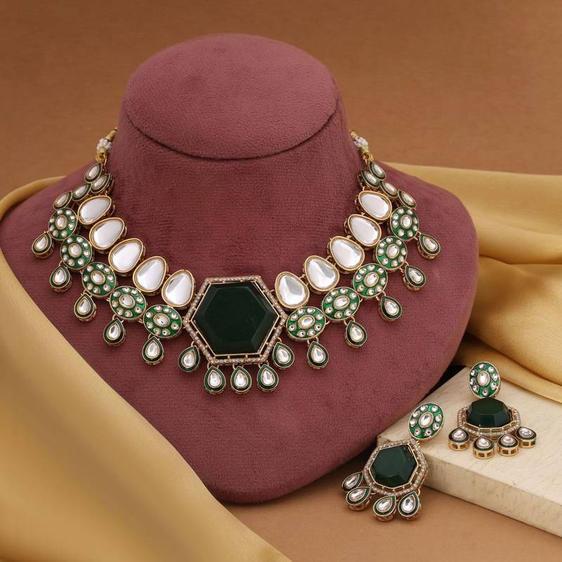 Product Description | Adjustable Rope | Necklace Length: 18.00 Cm X Width: 4.50 Cm | Earring Length: 6.00 Cm X Width: 2.70 Cm | Metal: Alloy With Good Quality Gold Plated | Color: Green | Stone: Kundan & Beads | Gross Weight: 112.00 Grams | Package Content: 1 Piece Of Necklace/1 Pair Of Earring | Back Finding: Post With Friction Back X Earring Style: Dangle |