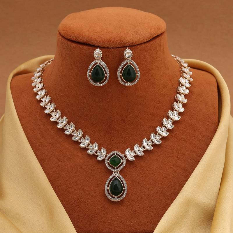 Product Description | Adjustable Rope | Necklace Length: 40.00 Cm X Width: 1.20 Cm | Earring Length: 3.20 Cm X Width: 2.00 Cm | Metal: Alloy With Good Quality Gold Plated | Color: Green | Stone: Kundan & Imitation Pearl | Gross Weight: 69.00 Grams | Package Content: 1 Piece Of Necklace/1 Pair Of Earring | Back Finding: Post With Friction Back X Earring Style: Dangle |