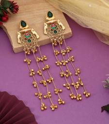 | Product Description | Earring Length: 22.00 Cm X Width: 4.80 Cm Metal: Brass With Good Quality Gold Plated | Color: Green | Stone: Monalisha Stone | Gross Weight: 71.00 Grams | Package Content: 1 Pair Of Earring | Back Finding: Post With Friction Back | Earring Style: Dangle |
