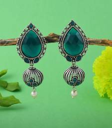 Product Description | Earring Length: 6.50 Cm X Width: 2.50 Cm | Metal: Brass With Good Quality Silver Plated | Color: Green | Stone: Glass Stone | Gross Weight: 19.00 Grams | Package Content: 1 Pair Of Earrings | Back Finding: Post With Friction Back X Earring Style: Drop |