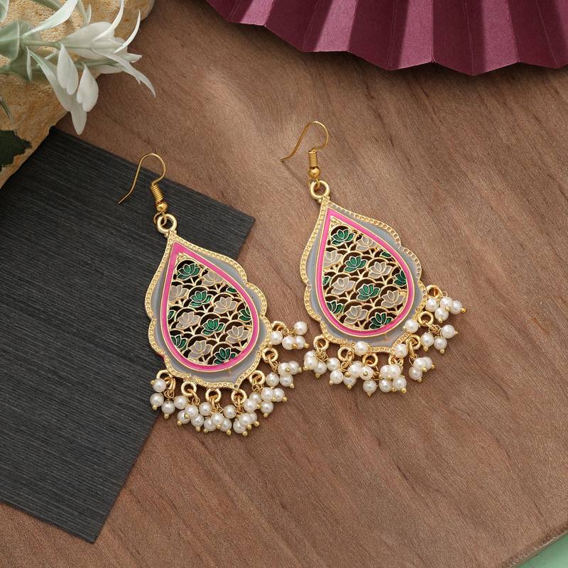 Grey color meenakari earrings