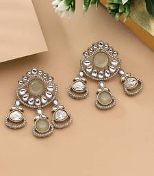 | Product Description | Earring Length: 6.50 Cm X Width: 3.20 Cm | Metal: Alloy With Good Quality Mehndi Gold Plated | Color: Light Green | Stone: Kundan | Gross Weight: 40.00 Grams | Package Content: 1 Pair Of Earrings | Back Finding: Post With Friction Back X Earring Style: Dangle |