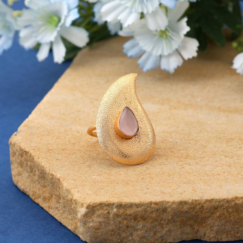 Ring Size: Adjustable | Metal: Brass With Good Quality Gold Plated | Color: Light Pink | Stone: Monalisa Stone | Gross Weight: 7.00 Grams | Package Content: 1 Piece Of Ring