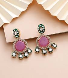 Earring Length: 6.00 Cm X Width: 2.70 Cm | Metal: Alloy With Good Quality Gold Plated | Color: Light Purple | Stone: Kundan | Gross Weight: 32.00 Grams | Package Content: 1 Pair Of Earring | Back Finding: Post With Friction Back X Earring Style: Dangle