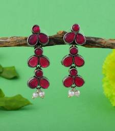 Product Description | Earring Length: 4.20 Cm X Width: 1.30 Cm | Metal: Brass With Good Quality Silver Plated | Color: Maroon | Stone: Glass Stone | Gross Weight: 8.00 Grams | Package Content: 1 Pair Of Earrings | Back Finding: Post With Friction Back X Earring Style: Drop |
