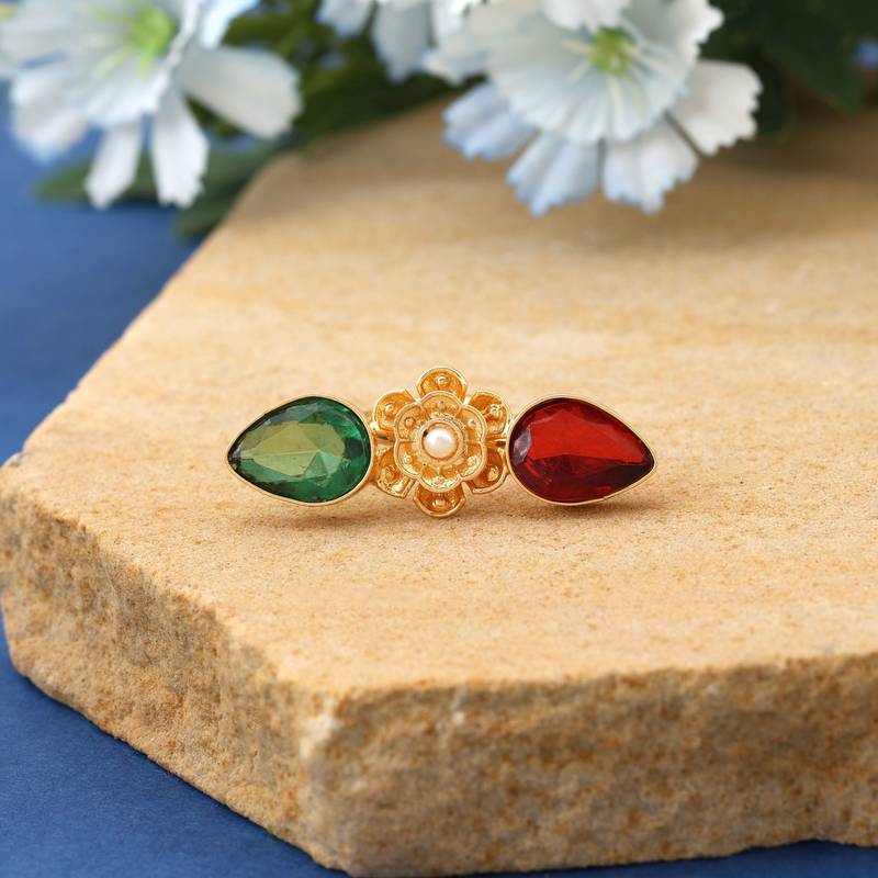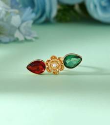 | Product Description | Ring Size: Adjustable | Metal: Brass With Good Quality Gold Plated | Color: Maroon & Green | Stone: Monalisa Stone | Gross Weight: 6.00 Grams | Package Content: 1 Piece Of Ring |
