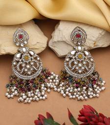 Product Description | Earring Length: 8.50 Cm X Width: 3.60 Cm | Metal: Alloy With Good Quality Mehndi Gold Plated | Color: Multi | Stone: Kundan & Beads | Gross Weight: 44.00 Grams | Package Content: 1 Pair Of Earring | Back Finding: Post With Friction Back X Earring Style: Dangle |