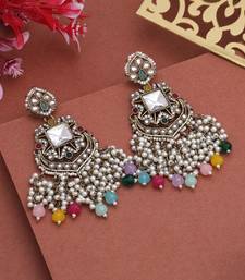 Product Description | Earring Length: 9.00 Cm X Width: 4.00 Cm | Metal: Alloy With Good Quality Mehndi Gold Plated | Color: Multi | Stone: Kundan & Imitation Pearl | Gross Weight: 57.00 Grams | Package Content: 1 Pair Of Earring | Back Finding: Post With Friction Back X Earring Style: Dangle |