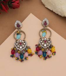 Earring Length: 7.00 Cm X Width: 2.50 Cm | Metal: Alloy With Good Quality Mehndi Gold Plated | Color: Multi | Stone: Kundan & Imitation Pearl | Gross Weight: 30.00 Grams | Package Content: 1 Pair Of Earring | Back Finding: Post With Friction Back X Earring Style: Dangle