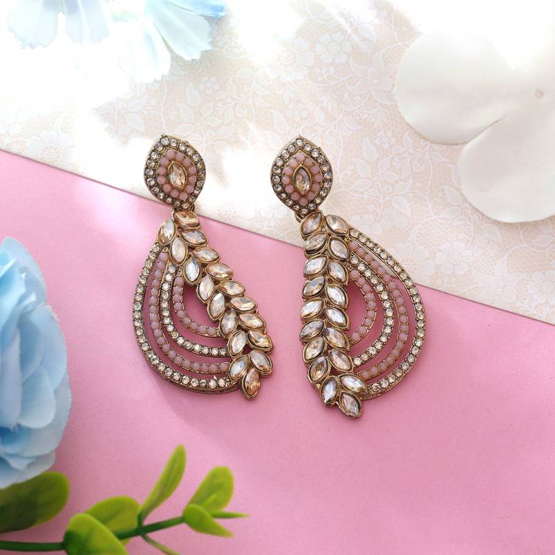 | Product Description | Earring Length: 6.00 Cm X Width: 2.50 Cm | Metal: Alloy With Good Quality Gold Plated | Color: Pink | Stone: Glass Stone | Gross Weight: 14.00 Grams | Package Content: 1 Pair Of Earring | Back Finding: Post With Friction Back X Earring Style: Dangle |