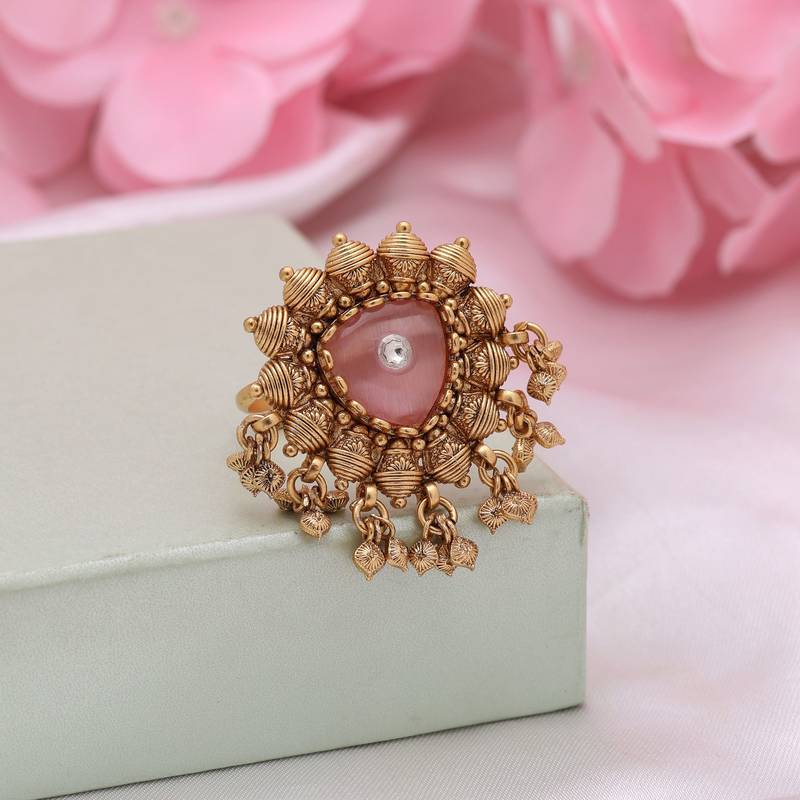 | Product Description | Ring Size: Adjustable | Diameter Length: 3.00 Cm X Width: 4.00 Cm | Metal: Alloy With Good Quality Gold Plated | Color: Pink | Stone: Glass Stone | Gross Weight: 16.00 Grams | Package Content: 1 Piece Of Rings |