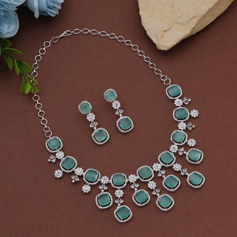 | Product Description | Adjustable Chain | Necklace Length: 21.00 Cm X Width: 4.50 Cm | Earring Length: 4.20 Cm X Width: 1.40 Cm | Metal: Brass With Good Quality Silver Plated | Color: Pista Green | Stone: American Diamond | Gross Weight: 73.00 Grams | Package Content: 1 Piece Of Necklace/ 1 Pair Of Earring | Back Finding: Post With Friction Back X Earring Style: Drop |