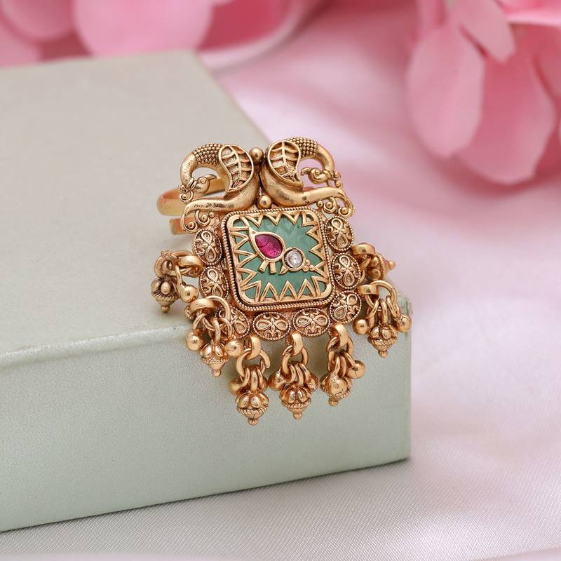 | Product Description | Ring Size: Adjustable | Diameter Length: 3.00 Cm X Width: 4.00 Cm | Metal: Alloy With Good Quality Gold Plated | Color: Pista Green | Stone: Glass Stone | Gross Weight: 15.00 Grams | Package Content: 1 Piece Of Rings |