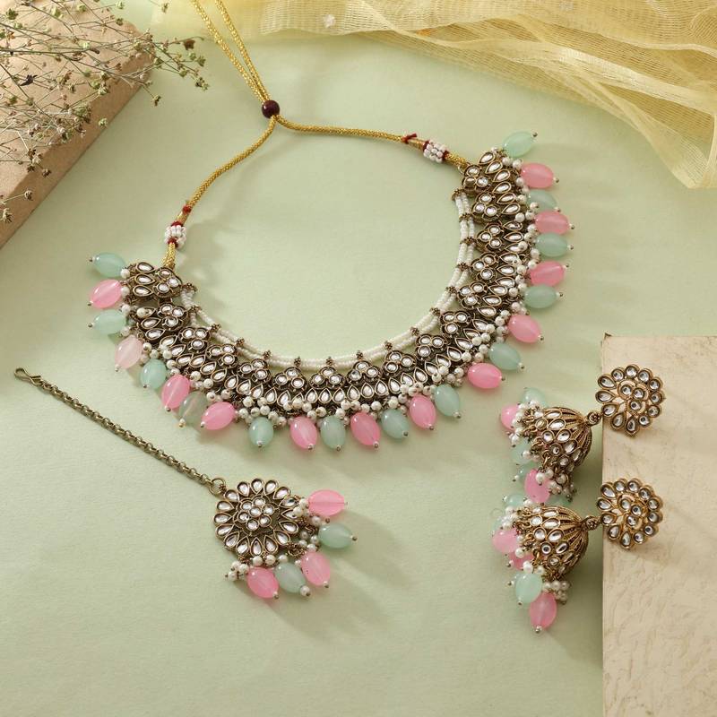 | Product Name | Pista Green & Pink Color Kundan Necklace Set | |