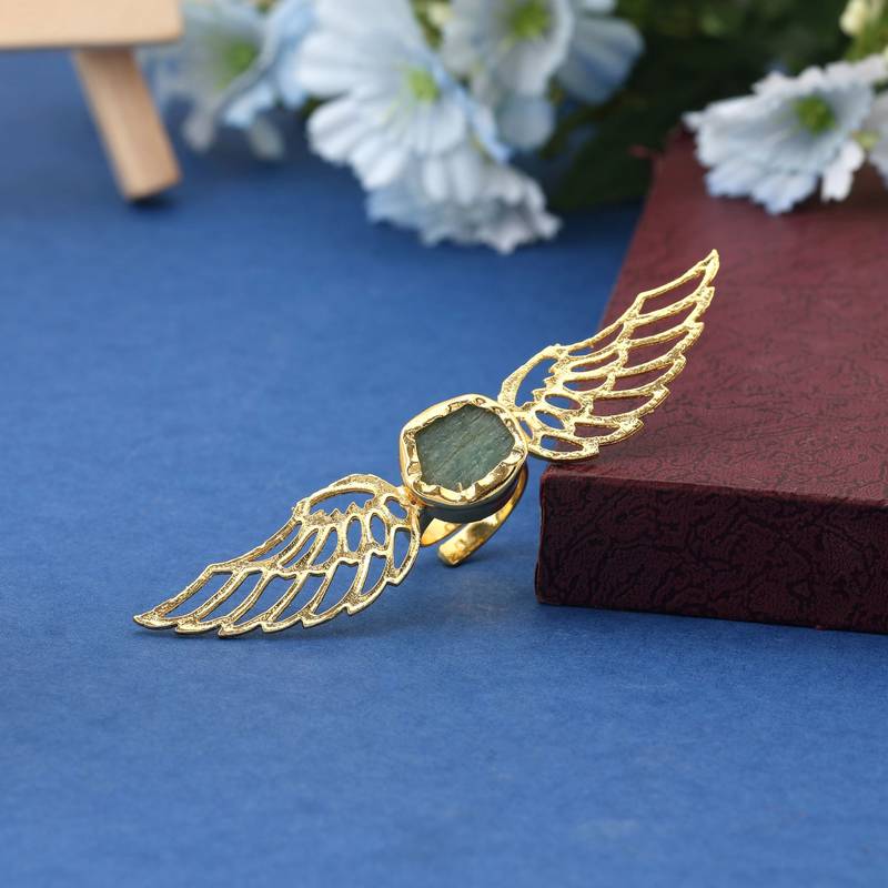 Ring Size: Adjustable | Metal: Brass With Good Quality Gold Plated | Color: Rama Green | Stone: Monalisa Stone | Gross Weight: 10.00 Grams | Package Content: 1 Piece Of Ring