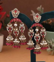 | Product Description | Earring Length: 8.00 Cm X Width: 3.50 Cm | Metal: Alloy With Good Quality Mehndi Gold Plated | Color: Rani | Stone: Kundan & Beads | Gross Weight: 45.00 Grams | Package Content: 1 Pair Of Earring | Back Finding: Post With Friction Back X Earring Style: Dangle |