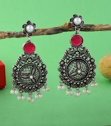 Product Description | Earring Length: 6.50 Cm X Width: 3.00 Cm | Metal: Brass With Good Quality Silver Plated | Color: Rani | Stone: Glass Stone | Gross Weight: 26.00 Grams | Package Content: 1 Pair Of Earrings | Back Finding: Post With Friction Back X Earring Style: Dangle |