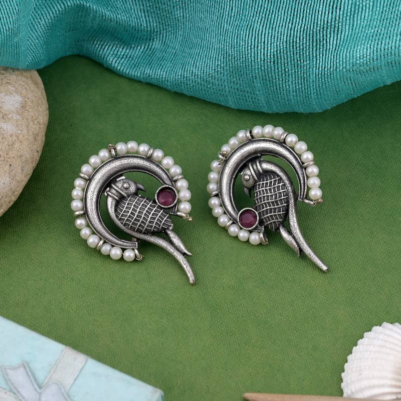 Product Description | Earring Length: 5.00 Cm X Width: 3.50 Cm | Metal: Brass With Good Quality Silver Plated | Color: Rani | Stone: Glass Stone | Gross Weight: 18.00 Grams | Package Content: 1 Pair Of Earring | Back Finding: Post With Friction Back X Earring Style: Dangle |