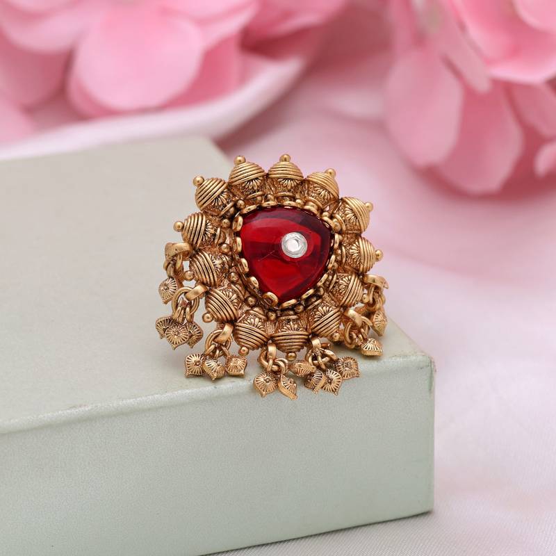 Ring Size: Adjustable | Diameter Length: 3.00 Cm X Width: 4.00 Cm | Metal: Alloy With Good Quality Gold Plated | Color: Red | Stone: Glass Stone | Gross Weight: 16.00 Grams | Package Content: 1 Piece Of Rings