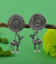 Product Description | Earring Length: 5.50 Cm X Width: 2.50 Cm | Metal: Brass With Good Quality Silver Plated | Color: Silver | Stone: Silver | Gross Weight: 17.00 Grams | Package Content: 1 Pair Of Earrings | Back Finding: Post With Friction Back X Earring Style: Dangle |