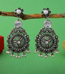 Product Description | Earring Length: 6.50 Cm X Width: 3.00 Cm | Metal: Brass With Good Quality Silver Plated | Color: Silver | Stone: Glass Stone | Gross Weight: 26.00 Grams | Package Content: 1 Pair Of Earrings | Back Finding: Post With Friction Back X Earring Style: Dangle |