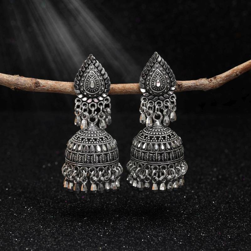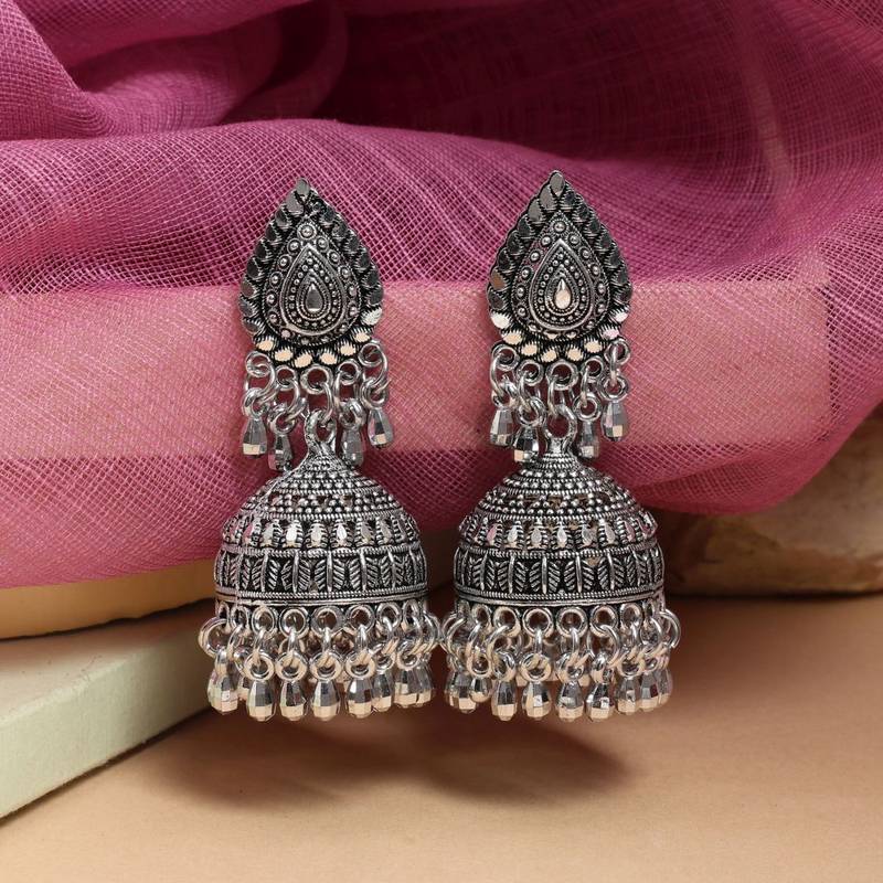 Product Description | Earring Length: 5.50 Cm X Width: 2.00 Cm | Metal: Alloy With Good Quality Silver Plated | Color: Silver | Gross Weight: 16.00 Grams | Package Content: 1 Pair Of Earring | Back Finding: Post With Friction Back X Earring Style: Jhumki |