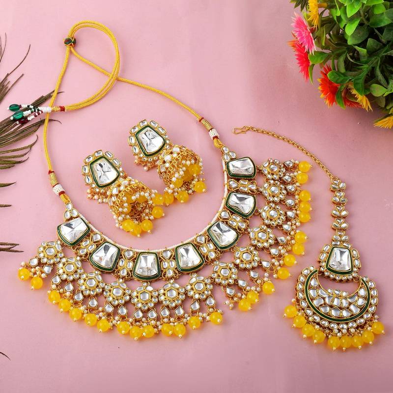 Product Name | Sunshine Yellow Color Kundan Necklace Set For Daytime Events | |