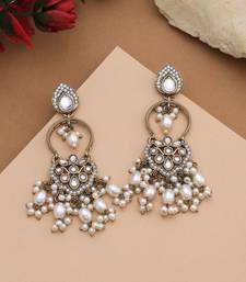 Product Description | Earring Length: 7.00 Cm X Width: 2.50 Cm | Metal: Alloy With Good Quality Mehndi Gold Plated | Color: White | Stone: Kundan & Imitation Pearl | Gross Weight: 30.00 Grams | Package Content: 1 Pair Of Earring | Back Finding: Post With Friction Back X Earring Style: Dangle |