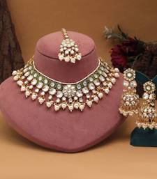Product Description | Adjustable Rope | Necklace Length: 22.00 Cm X Width: 4.50 Cm | Earring Length: 8.00 Cm X Width: 3.00 Cm | Metal: Alloy With Good Quality Gold Plated | Color: White | Stone: Kundan & Imitation Pearl | Gross Weight: 158.00 Grams | Package Content: 1 Piece Of Necklace/1 Pair Of Earring/1 Piece Of Maang Tikka | Back Finding: Post With Friction Back X Earring Style: Jhumka |