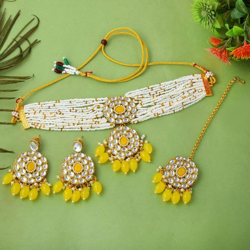 Product Name | Yellow Color Choker Kundan Necklace Set With Traditional Design Accents | |