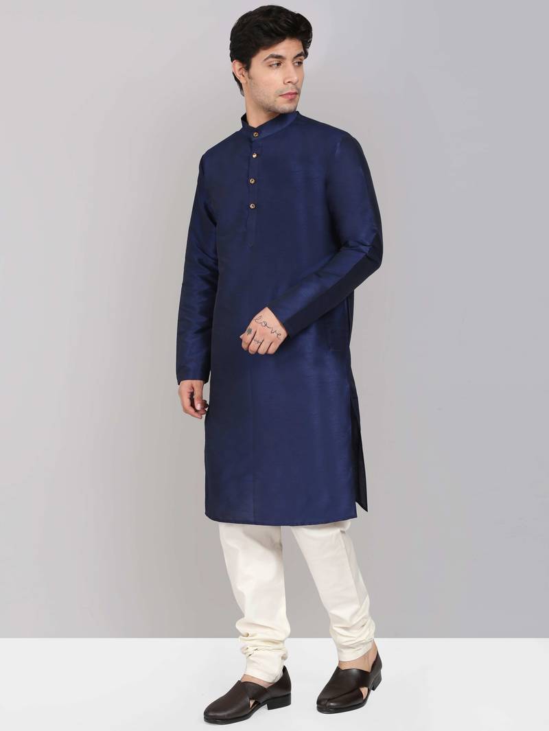 | Product Description | Step Into Refined Elegance With This Men’s Blue Designer Kurta Paired With A Crisp Off White Churidar. Crafted From Breathable Fabric, It Ensures All Day Comfort While Offering A Clean, Sophisticated Look. The Kurta Features A Highlighted Show Button Detail At The Neck, Adding A Subtle Yet Stylish Accent—Perfect For Festive Occasions, Celebrations, And Modern Ethnic Wear. |