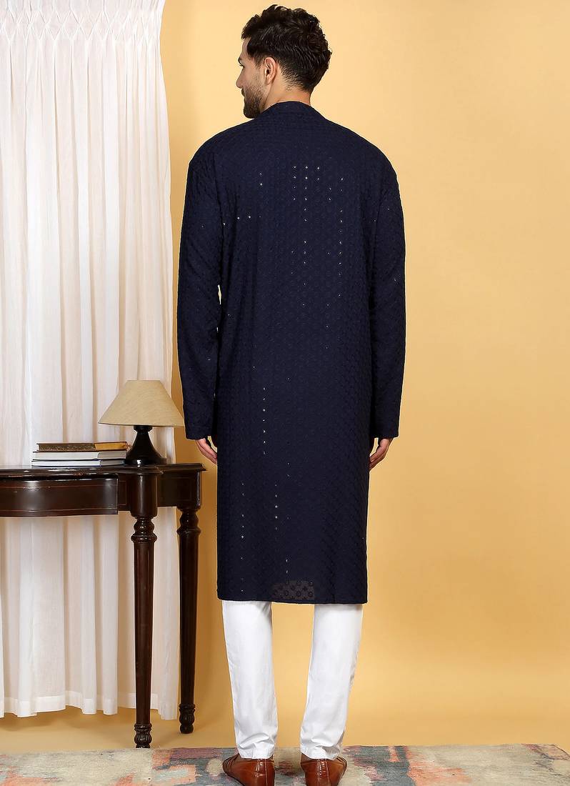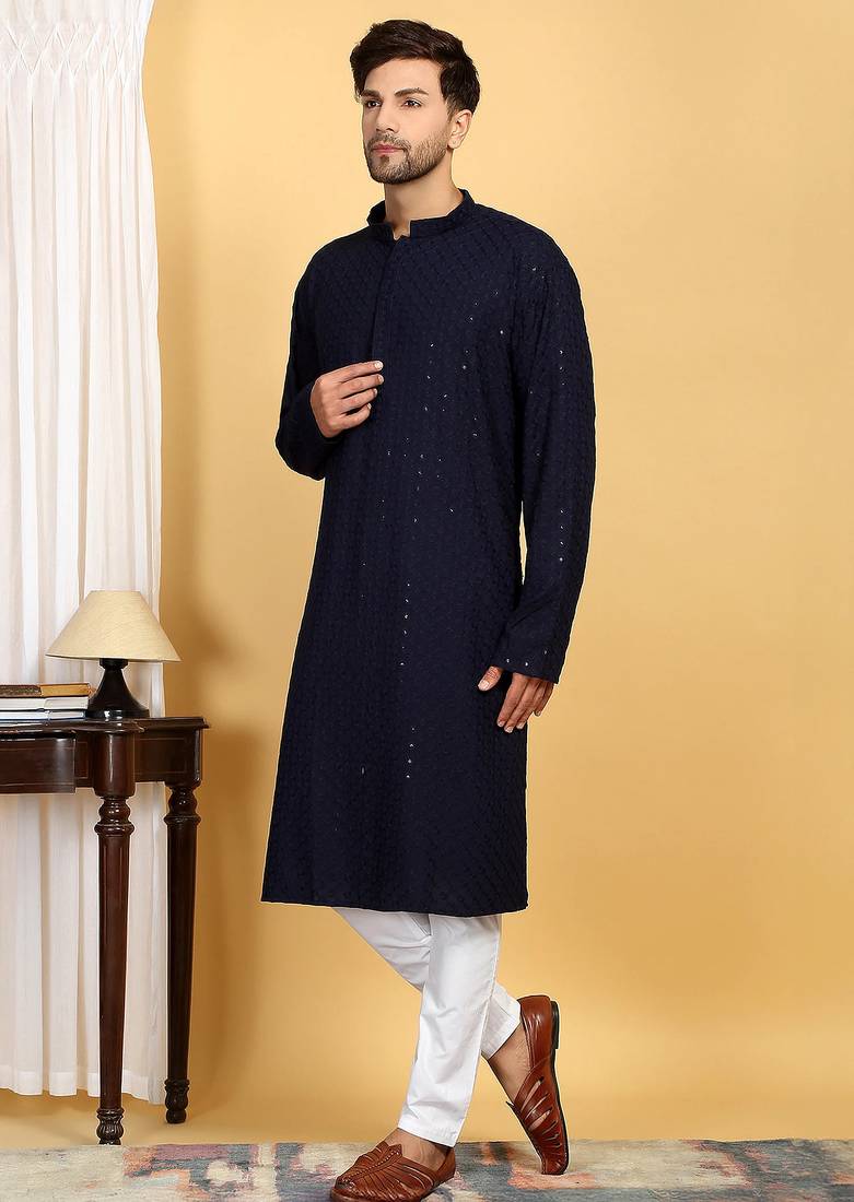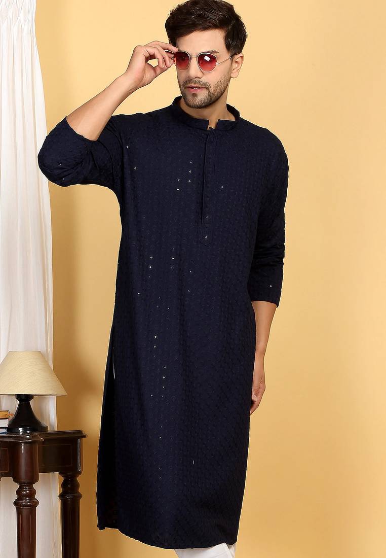 | Product Description | Elevate Your Ethnic Wardrobe With This Stylish Blue Cotton Kurta Set, Featuring Elegant Sequins Highlighted Embroidery For A Refined Festive Look. Crafted From Soft And Breathable Cotton Fabric, It Offers All Day Comfort With A Premium Feel. Perfect For Weddings, Festive Occasions, Parties, And Traditional Gatherings. |