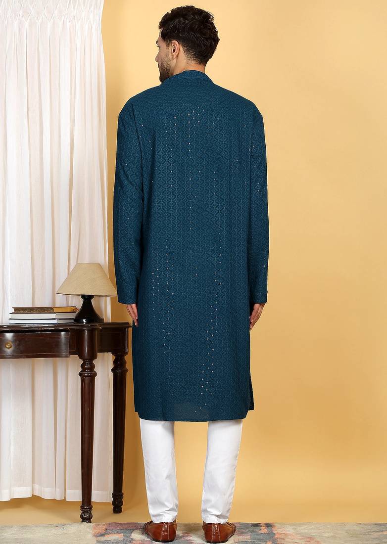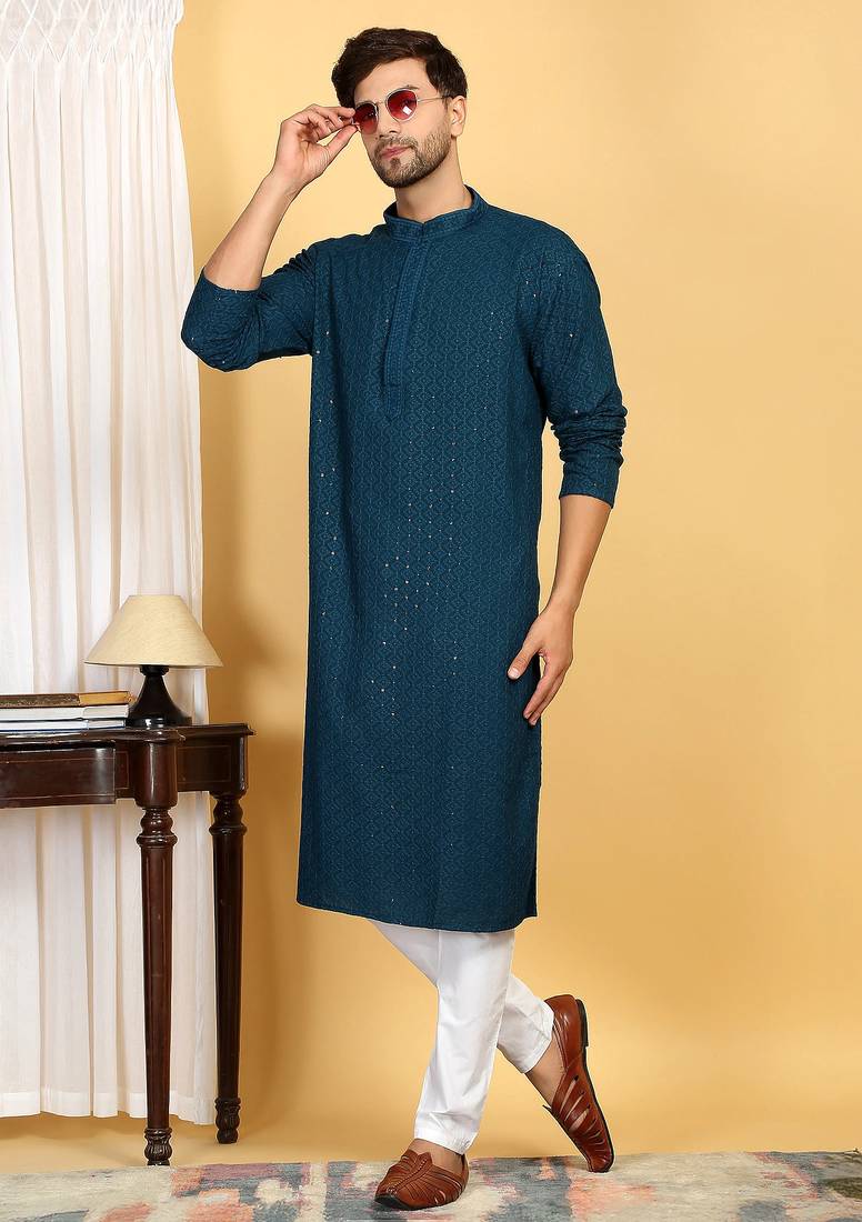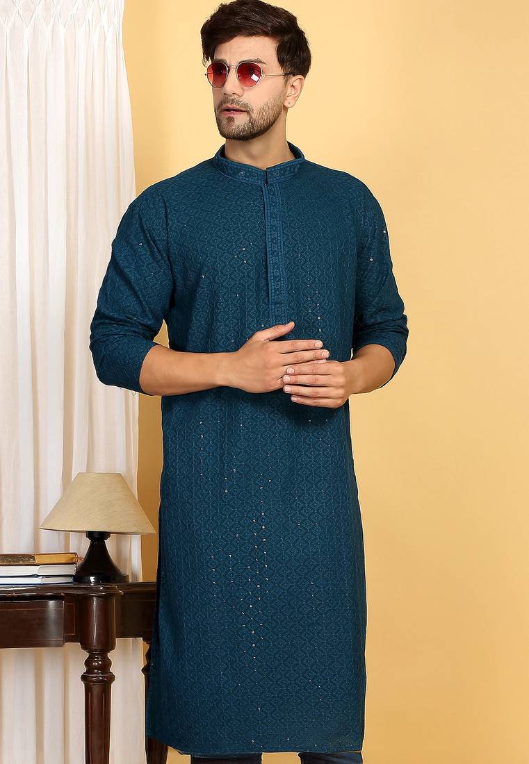 | Product Description | Elevate Your Ethnic Wardrobe With This Stylish Teal Green Cotton Kurta Set, Featuring Elegant Sequins Highlighted Embroidery For A Refined Festive Look. Crafted From Soft And Breathable Cotton Fabric, It Offers All Day Comfort With A Premium Feel. Perfect For Weddings, Festive Occasions, Parties, And Traditional Gatherings. |