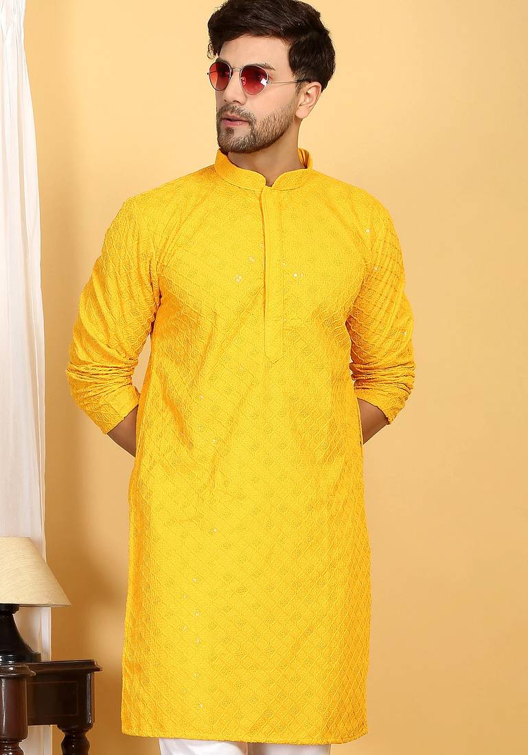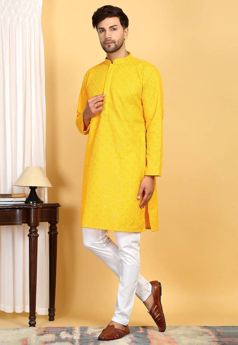 | Product Description | Elevate Your Ethnic Wardrobe With This Stylish Yellow Cotton Kurta Set, Featuring Elegant Sequins Highlighted Embroidery For A Refined Festive Look. Crafted From Soft And Breathable Cotton Fabric, It Offers All Day Comfort With A Premium Feel. Perfect For Weddings, Festive Occasions, Parties, And Traditional Gatherings. |