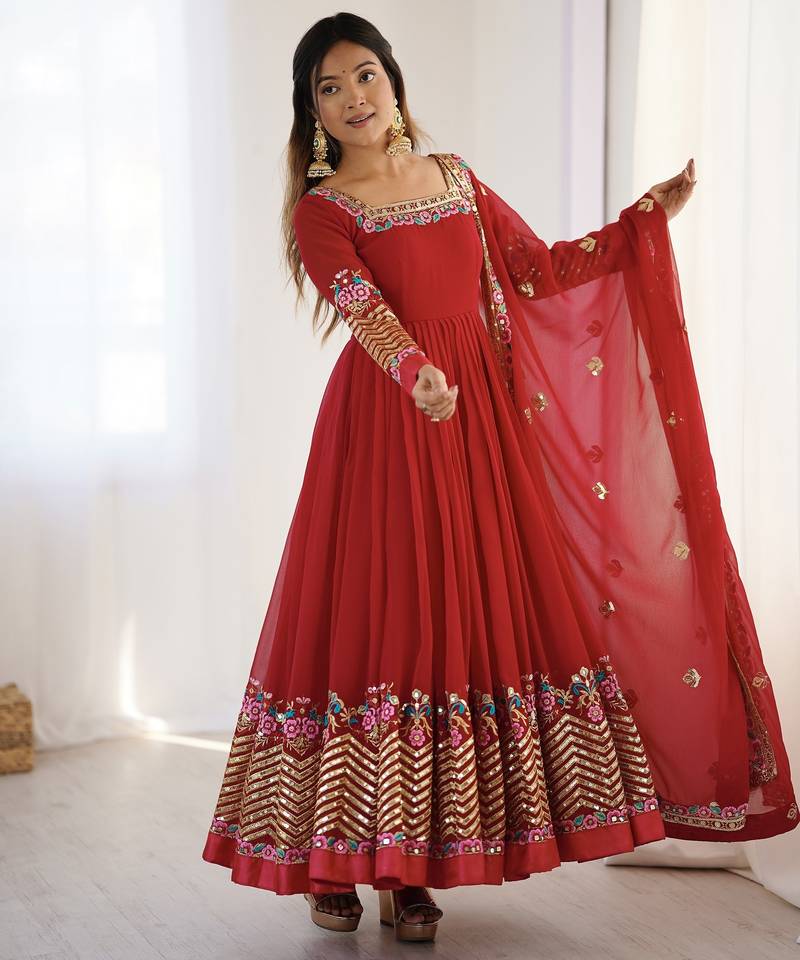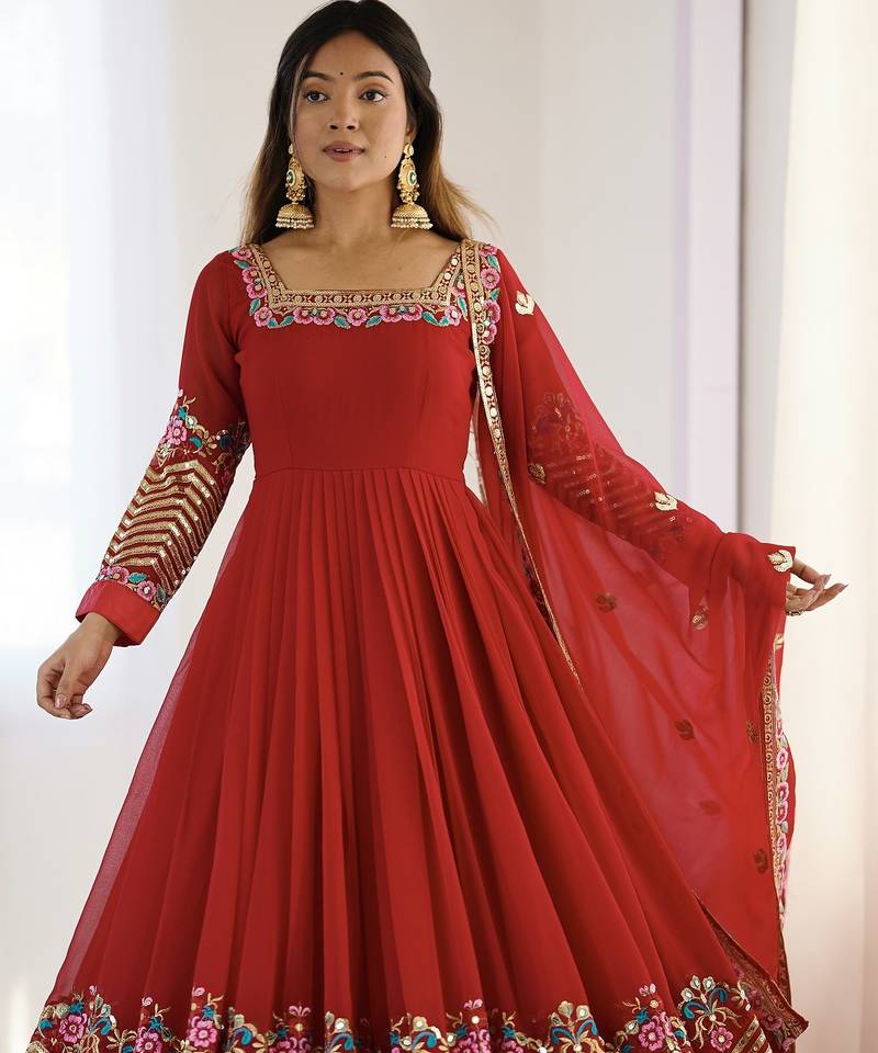 | Product Name | Heavy Faux Georgette Embroidery Work Red Readymade Gown | |