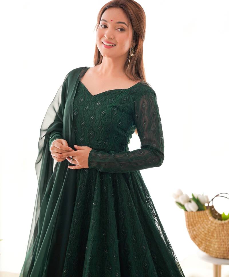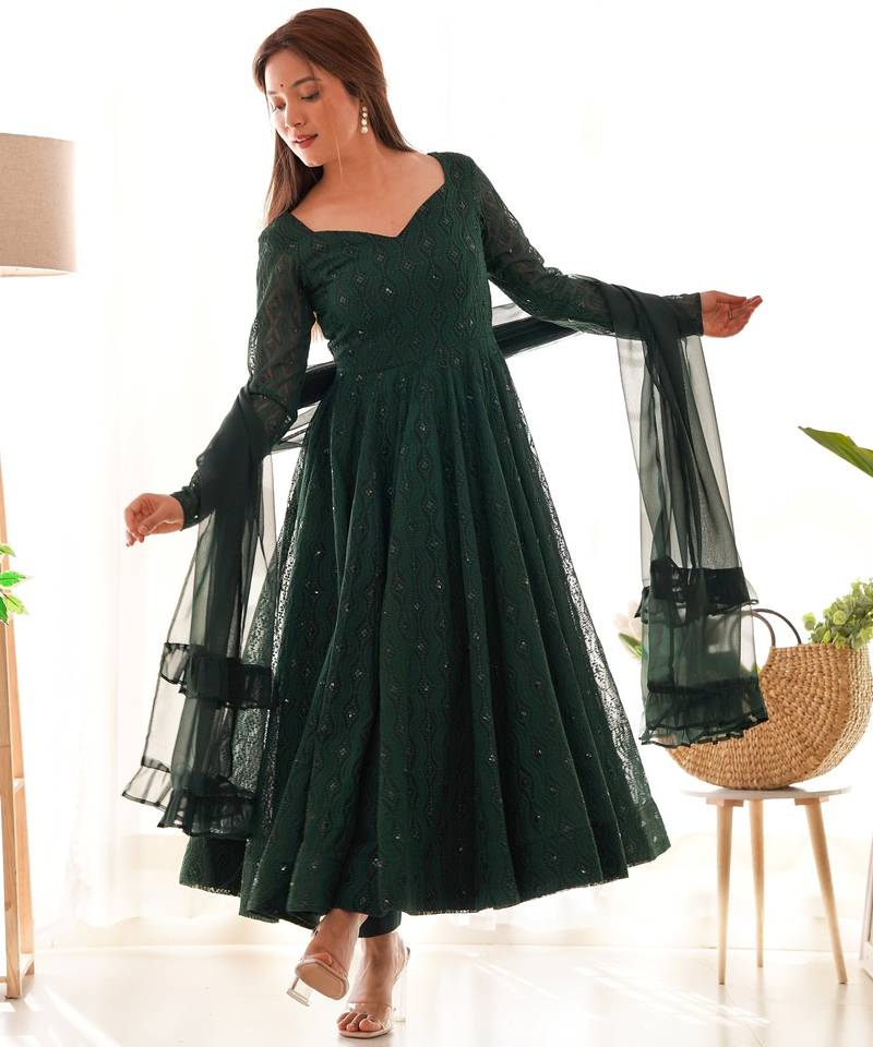 Timeless havy lukhnowi georgette green readymade salwar suit stitched