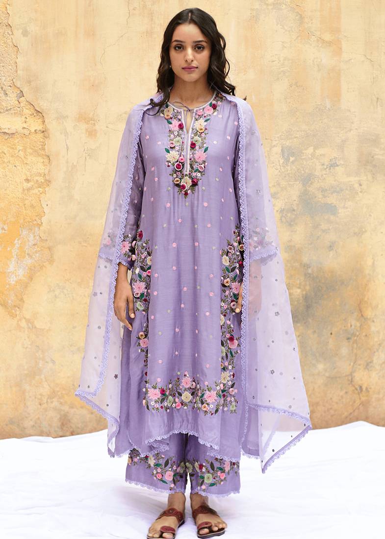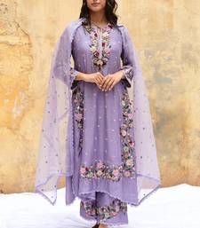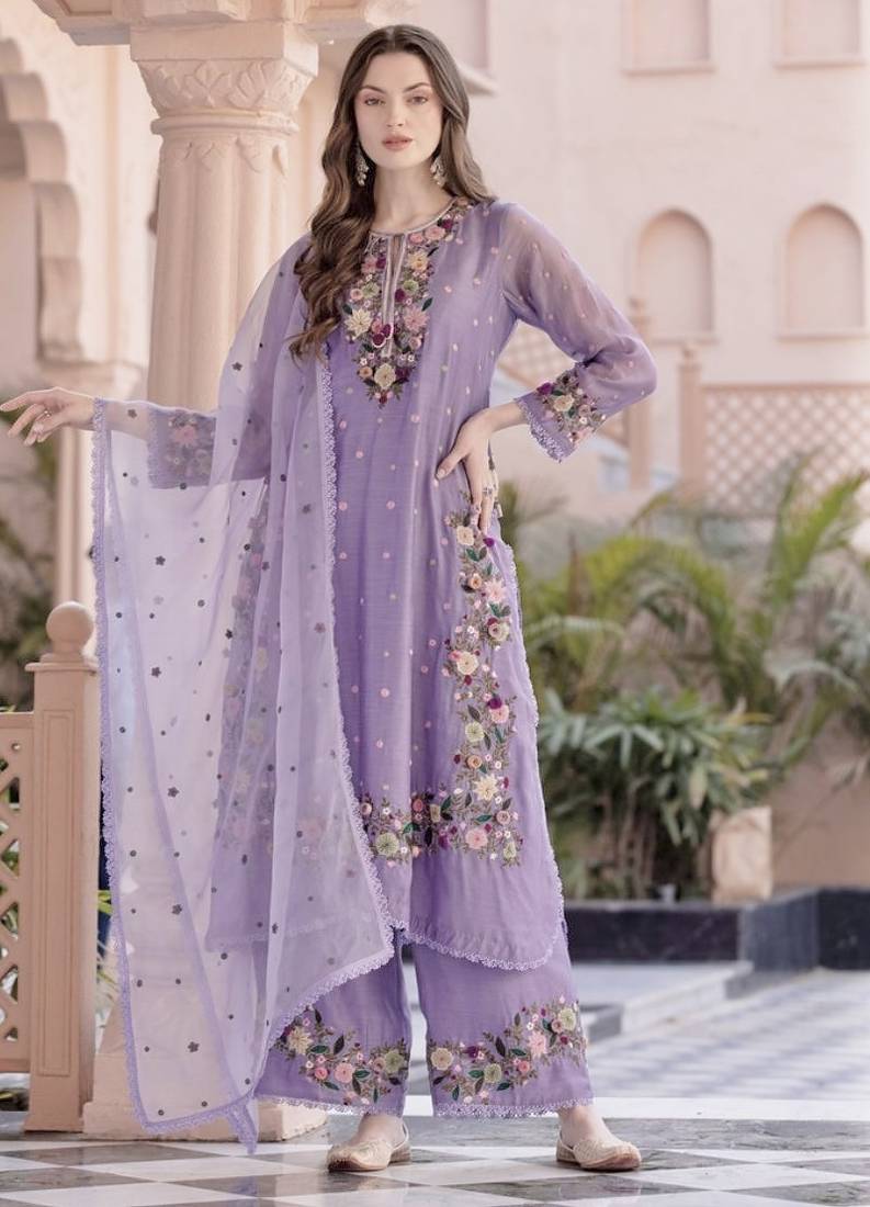 Trendy faux georgette embroidery and sequence work lavender readymade salwar suit stitched