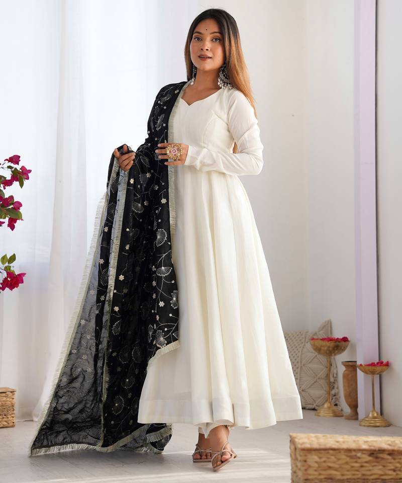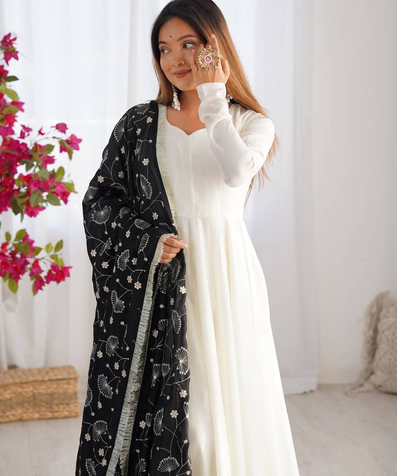 Trendy vichitra soft silk embroidery white salwar suit stitched