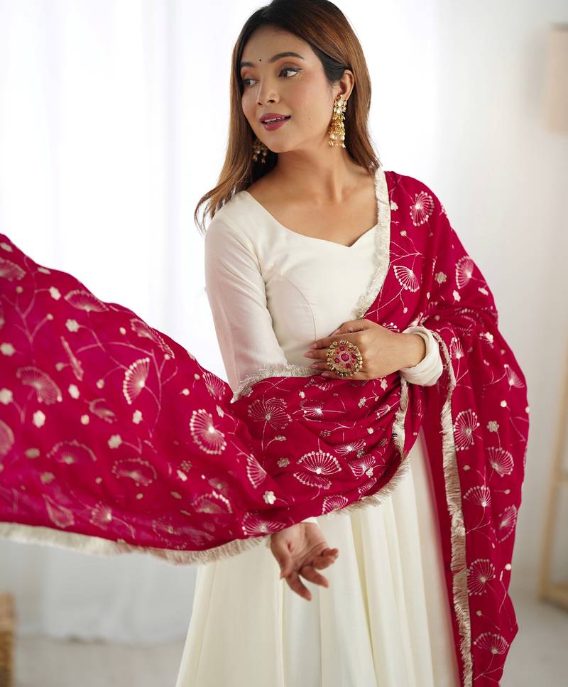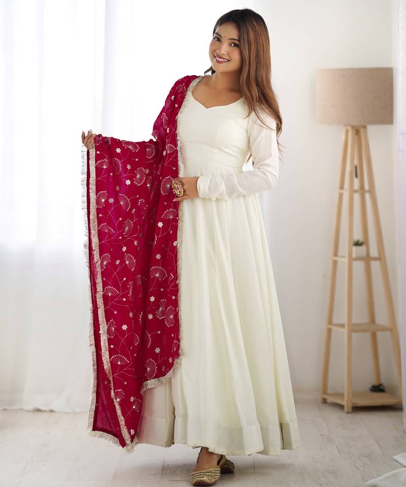 | • | Dupatta | : | Color- White / Fabric- Silk |