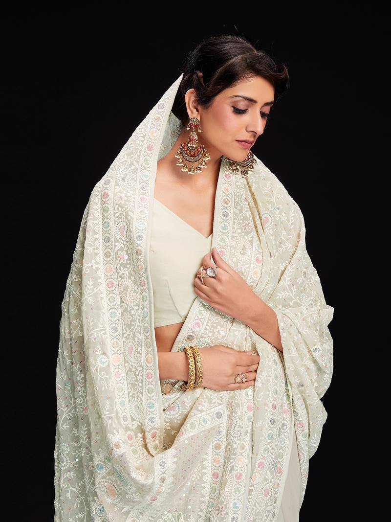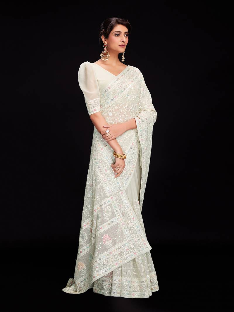 | Product Name | Fusionic Ivory Embroidered Georgette Sarees With Blouse | |