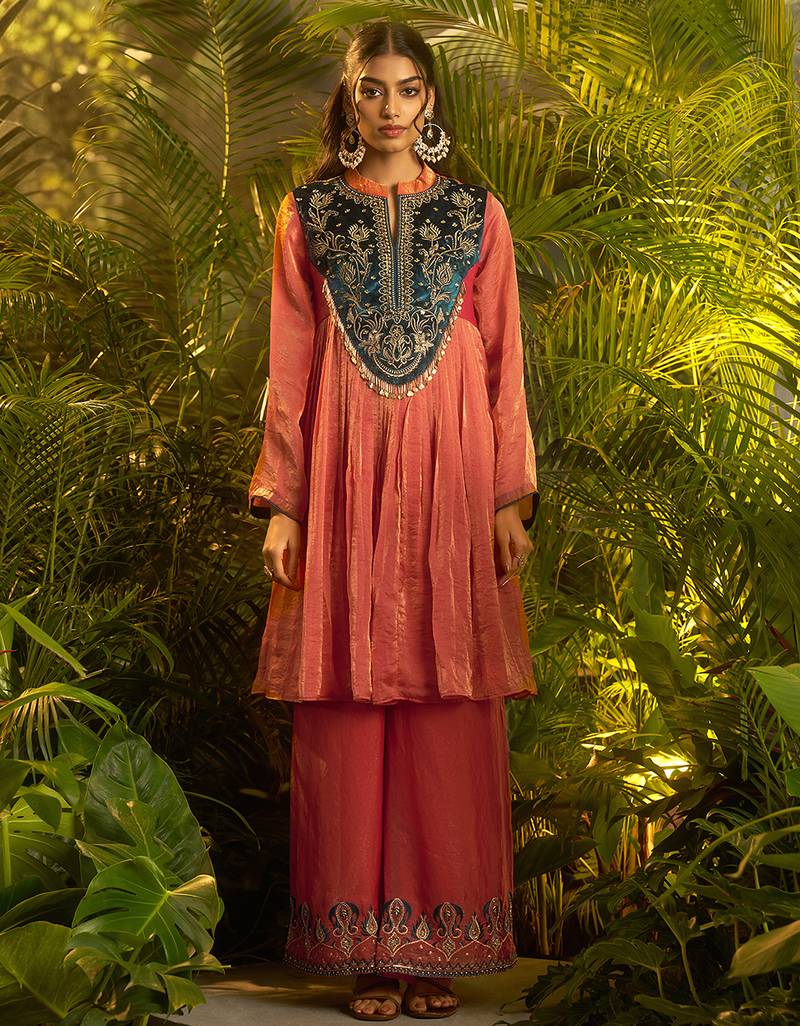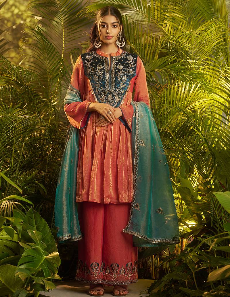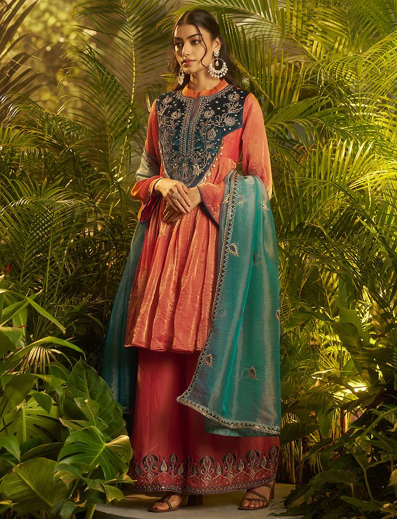 | Product Name | Orange Hand Work Kurta Palazzo With Dupatta | |
