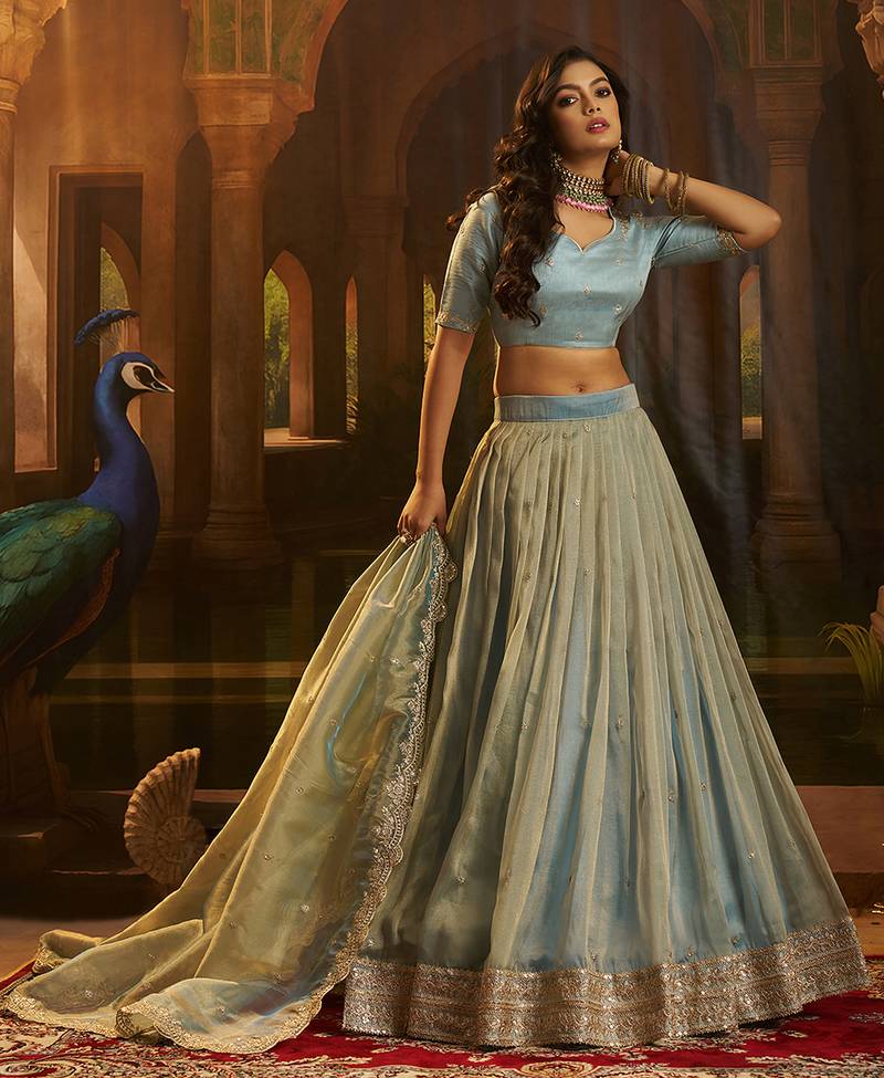 | Product Name | Turquoise Organza Lehenga Set With Choli And Dupatta | |