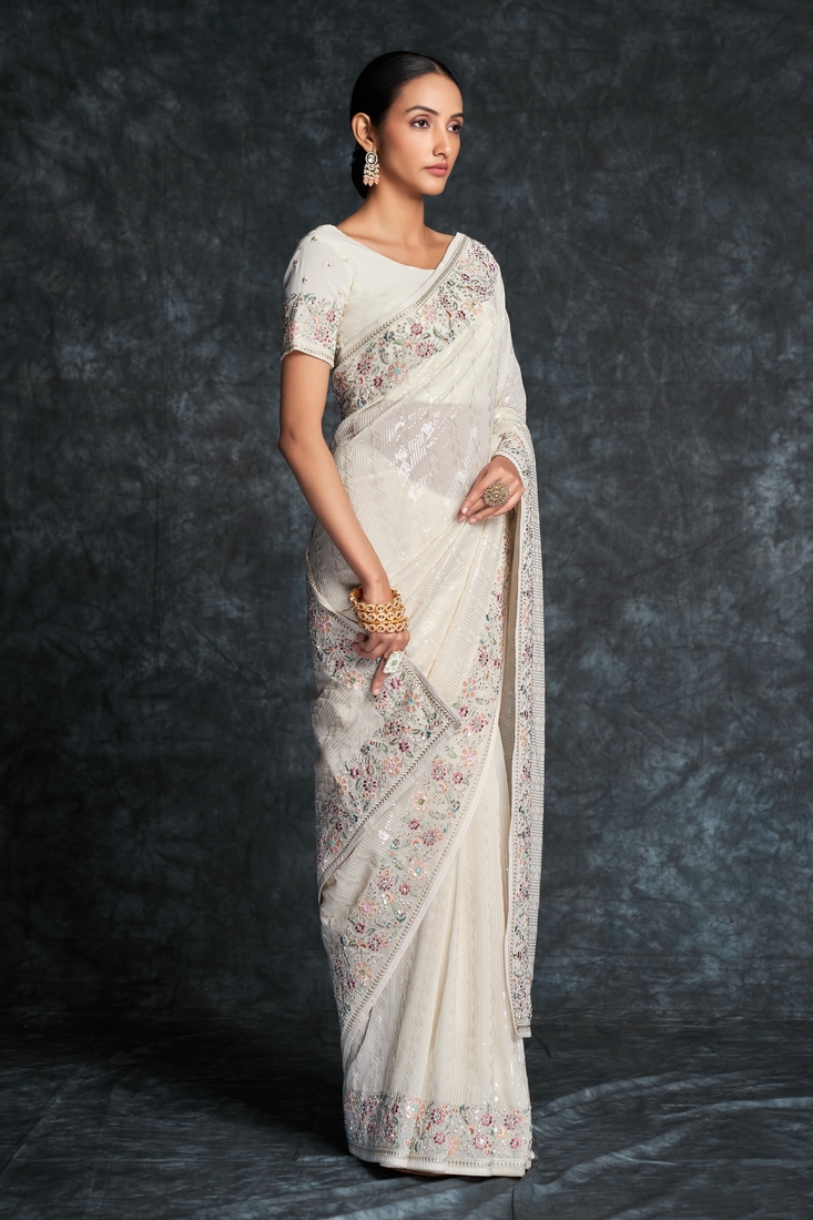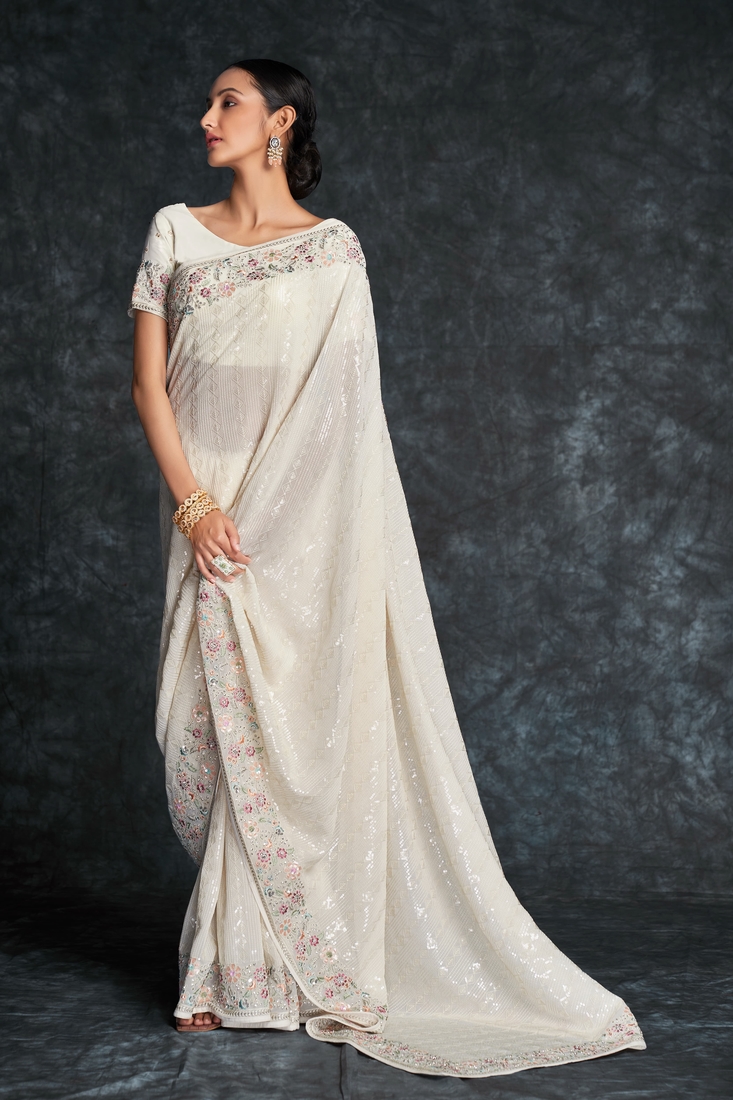 | Product Description | Saree Details: Fusionic White Color Embroidered Ethnic Sarees In Georgette With Blouse