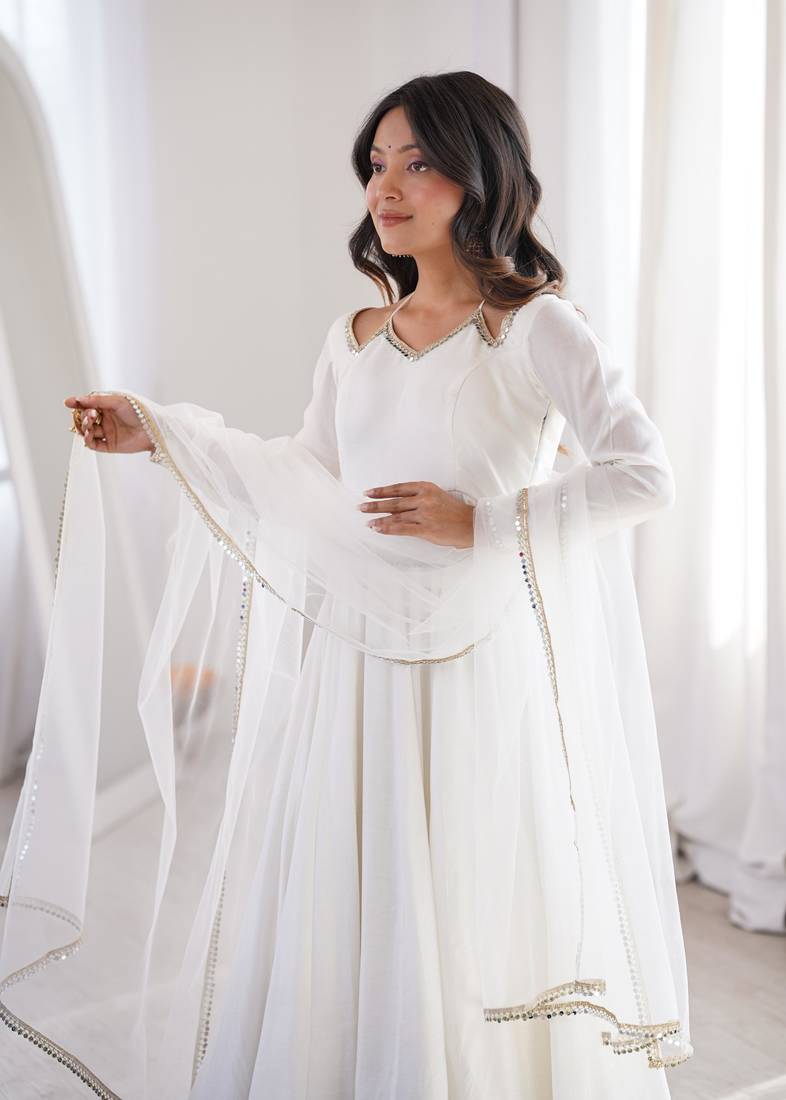 | Product Name | Off White Chanderi Silk Anarkali Set With Stylish Neckline And Dupatta Set | |