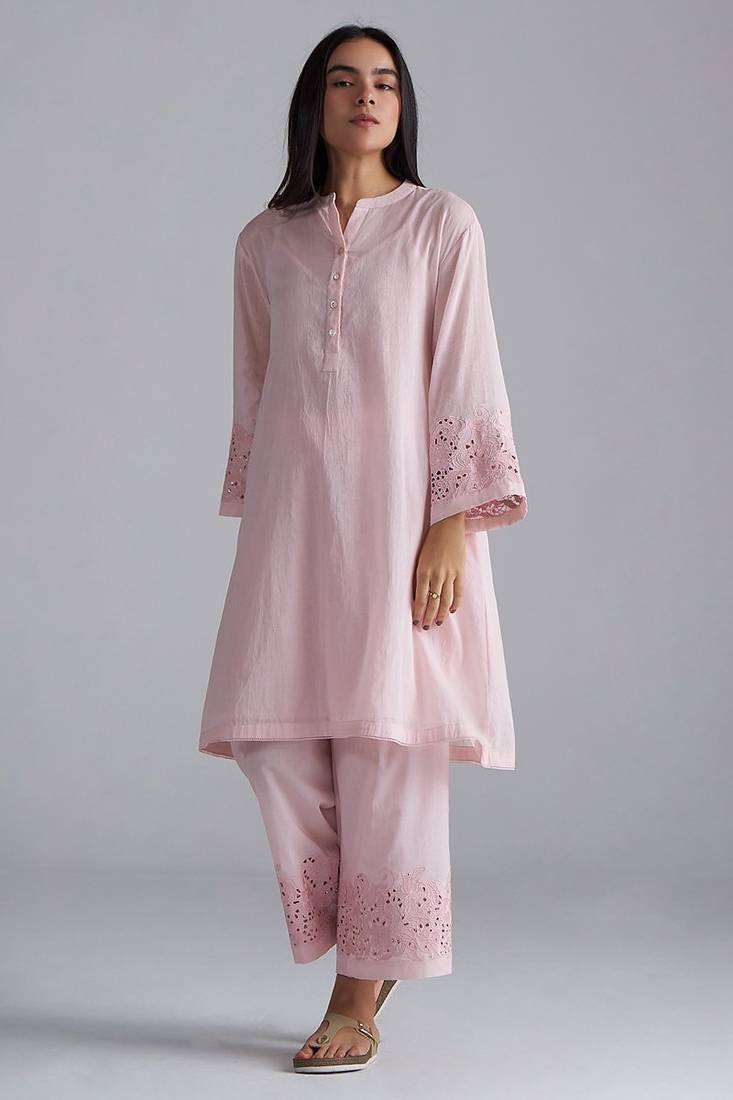 | Product Description | Soft, Light, And Easy To Wear, This Crystal Pink Mul Mul Co Ord Set Is All About Comfort With A Clean And Stylish Look. The Mul Mul Fabric Feels Soft On The Skin And Is Perfect For Everyday Wear, Especially In Warm Weather. The Kurta Features A Simple Front Button Design With Detailed Cutwork On The Sleeves, While The Matching Palazzo Pants Also Have Cutwork Detailing At The Hem, Giving The Set A Neat And Coordinated Look. This Mul Mul Co Ord Set Is Perfect For Daily Wear, Casual Outings, Travel, And Relaxed Festive Days When You Want To Wear Something Simple, Comfortable, And Stylish At The Same Time. |