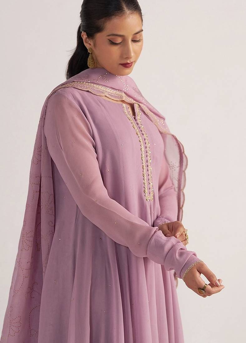 Dusky orchid georgette anarkali kurta set