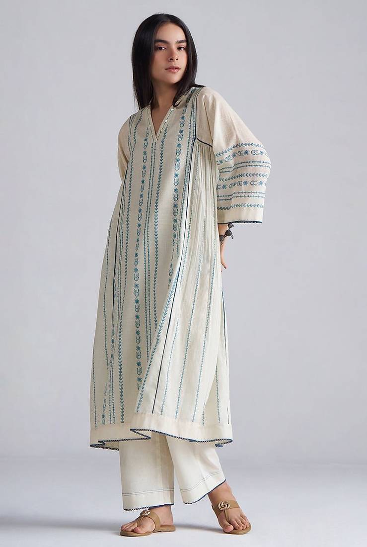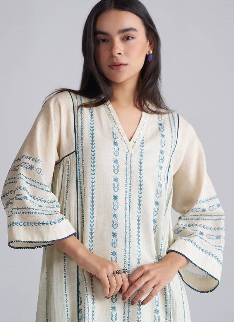 | Product Name | Ivory With Blue Cotton Linen Co Ord Set | |