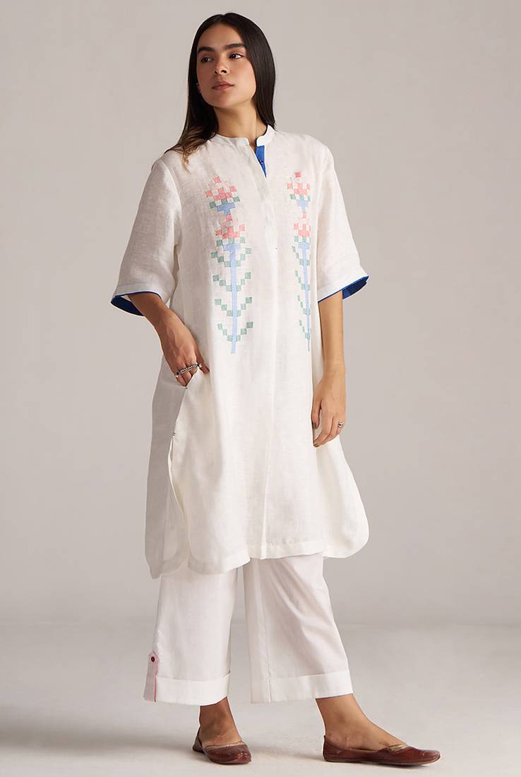 Handloom Yarns and Slubs may have some uneven and missing contrasts.They are inherent chararcteristic of the fabric that make its style peculiar.