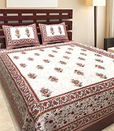 Vkmarotia queen size jaipuri traditional cotton double bedsheets bedspread bed cover with 2 pillow covers (brown)
